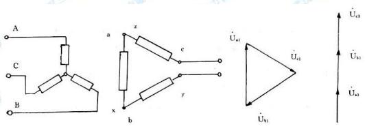 該裝置是由三臺單相變壓組成,其工作原理如圖一