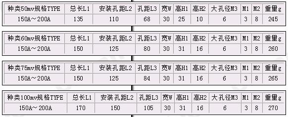 FL-2型150A~200A錳銅分流器技術指標